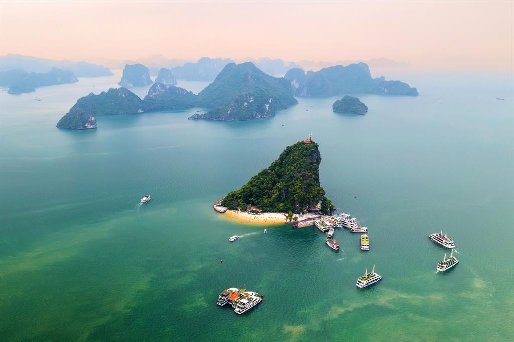 ven bờ của đảo Cái Bầu lớn nhất vịnh Bái Tử Long và đối mặt với biển