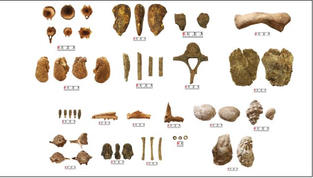 Một số hiện vật được khai quật tại hang Đông Trong (Vân Đồn, Quảng Ninh)